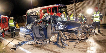 Kurz nach Mitternacht schrillten die Alarmsirenen bei der FF Biedermannsdorf. Die Bezirkszentrale meldet einen schweren Unfall auf der B 11. Wegen Sekundenschlafs verlor der Lenker eines Pkw die Kontrolle über sein Fahrzeug, landete im Straßengraben und prallte dort gegen einen Baum. Doch die Horrorfahrt war noch nicht zu Ende. Der Wagen wurde gegen eine Lärmschutzwand geschleudert und landete schließlich quer zur Fahrbahn auf dem Dach.