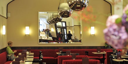 Anders als nach dem Loos-Rückbau im Jahr 2003, der - wenig erfolgreich - auf freie Tischaufstellung und kühle Schlichtheit setzte, prägen jetzt wieder mit rotem Backhausen-Stoff überzogene, halbrunde Sitznischen und Wandbänke das Cafe. Marmortische, Thonetstühle - ein Modell aus dem Jahr 1911 - in klassischem Schwarz, 35 messingvernickelte Wandleuchten und neun große Metallkugellampen, in denen sich die Innenräume spiegeln, sollen darüber hinaus für authentische Wiener Kaffeehausatmosphäre sorgen.