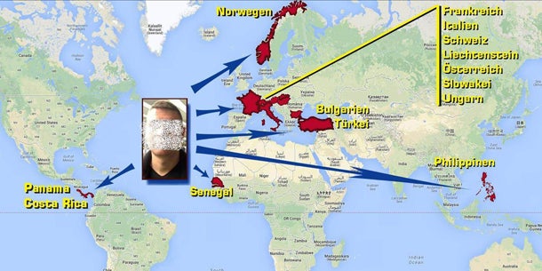 Tätig war die Gruppierung auch in Mittelamerika und in Südostasien. Auf den Philippinen, in Panama und Costa Rica wurde Geld mit Kreditkarten behoben, an deren Daten die Betrüger durch Skimming gelangt waren. Dieses Auslesen von Daten real und legal existierender Kreditkarten wurde in Italien und Frankreich durchgeführt.