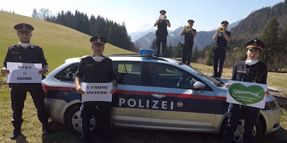 Aufheiterung. Die Polizei, die an Ostern für die Sicherheit der Bürger im Einsatz ist, sorgt nun mit einem Video in diesen schweren Zeiten der Pandemie für ein wenig Aufheiterung. Die Beamten wünschen in einem Video frohe Ostern und mahnen gleichzeitig die Österreicher zuhause zu bleiben, um das Virus einzudämmen und nicht weiterzutragen.