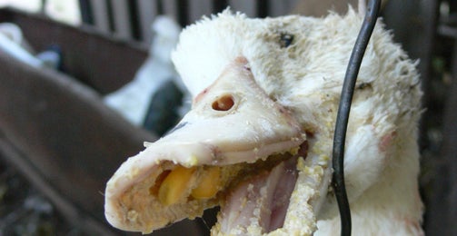 der Stopfmast massiv gequält und zwangsgefüttert.