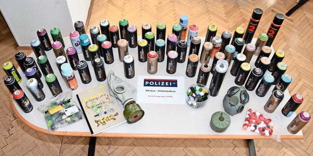 Kontrolle. Gefasst wurde der Gesuchte bei einer Kontrolle eines Autos in Nürnberg mit vier jungen Männern, die sich verdächtig benahmen. Das Auto war voller Spraydosen, und ein Mann hatte ein Skizzenbuch dabei, in dem sich einige der Grazer Schriftzeichen befanden. Die deutschen Kollegen informierten die steirischen Cops, die den Verdächtigen daheim antrafen. Nach der Hausdurchsuchung war dann klar, dass es sich bei dem 22-Jährigen um den Rekordsprayer, der allein in Graz einen Schaden von 100.000 Euro angerichtet haben soll, handelt.