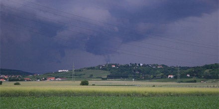 Zuerst sahen die beiden sogenannte Trichterwolken, die Vorboten für einen Tornado. Dann entlud sich ein heftiges Gewitter, bei dem die rotierenden Wolkentrichter den Boden erreichten – ein Tornado.
