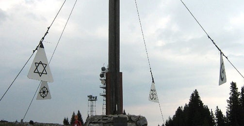 Am Gipfel des Grazer Hausberges Schöckl (1.445 Meter) sind in Anlehnung an die Künstleraktion "Halbmonde auf Gipfeln" vier Tafeln mit religiösen Symbolen aufgetaucht.