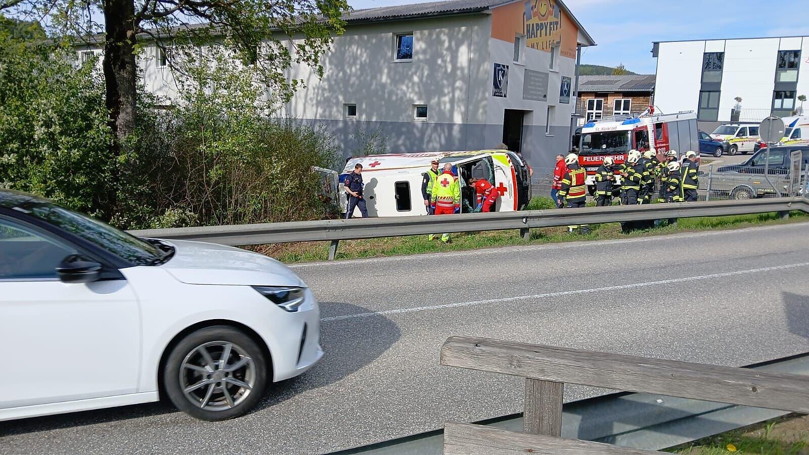 OÖ. Zu dem Horror-Unfall kam es am Montagnachmittag auf der B120 in der Gemeinde St. Konrad (Bezirk Gmunden). An Bord des Rettungsautos waren zwei Sanitäter, ein Praktikant und ein älterer Patient, der vom Spital nach Hause transportiert werden sollte.