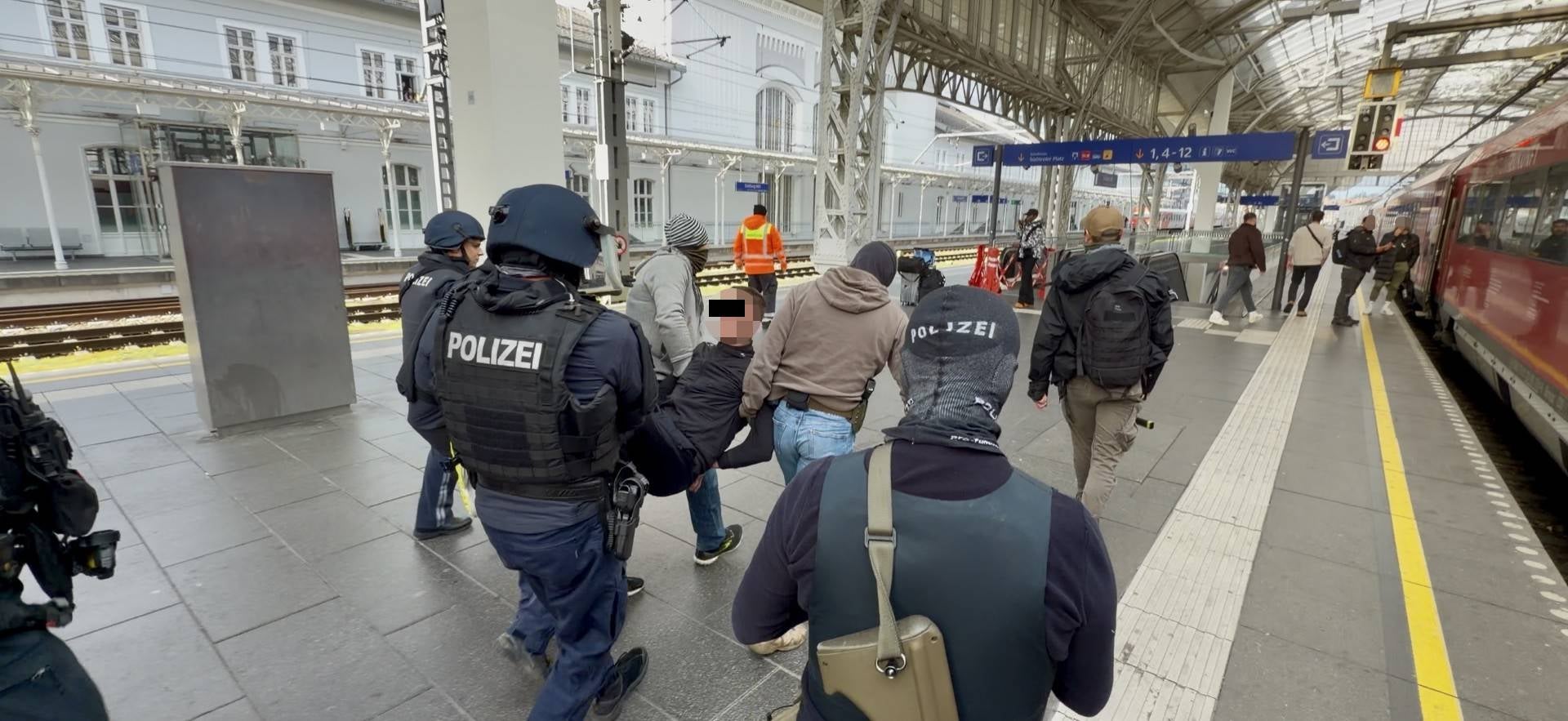 Sbg. Bekannt ist derzeit nur, dass der in Deutschland amtsbekannte Verdächtige, bevor er tatsächlich zu seiner angekündigten Tat schreiten konnte, mit einem Großaufgebot der Cobra und der Puma-Einsatzgruppe (den ehemaligen Schengenfahndern) dem Salzburger Hauptbahnhof aus dem Zug geholt, gezerrt und über die Rolltreppen von den schwer bewaffneten Einsatzkräften vom Bahnhofsgelände - man kann wohl annehmen zum Arrestantenwagen - getragen wurde.