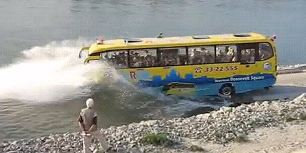 Derartige Gefährte sind in anderen Städten schon länger als Attraktionen in Betrieb - etwa in Budapest, wo ein knallgelbe Touristen-Bus in die Donau eintaucht. Der "RiverRide"-Bus ist 12 Meter lang und rund 15 Tonnen schwer. Laut dem ungarischen Betreiber nahmen in zwei Jahren etwa 75.000 Menschen an der Stadtrundfahrt im Amphibienbus teil.