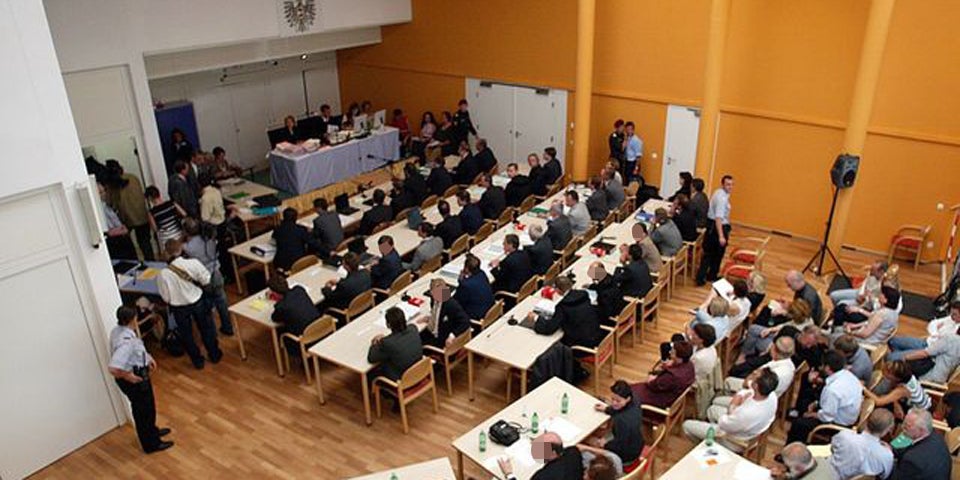 Journalisten können den Prozess in einem Nebenraum per Videoübertragung beobachten. Ins Kolpinghaus war man bereits im Juni 2002 aus Platzgründen zur Abhaltung des Prozesses um die Seilbahn-Brandkatastrophe in Kaprun übersiedelt.