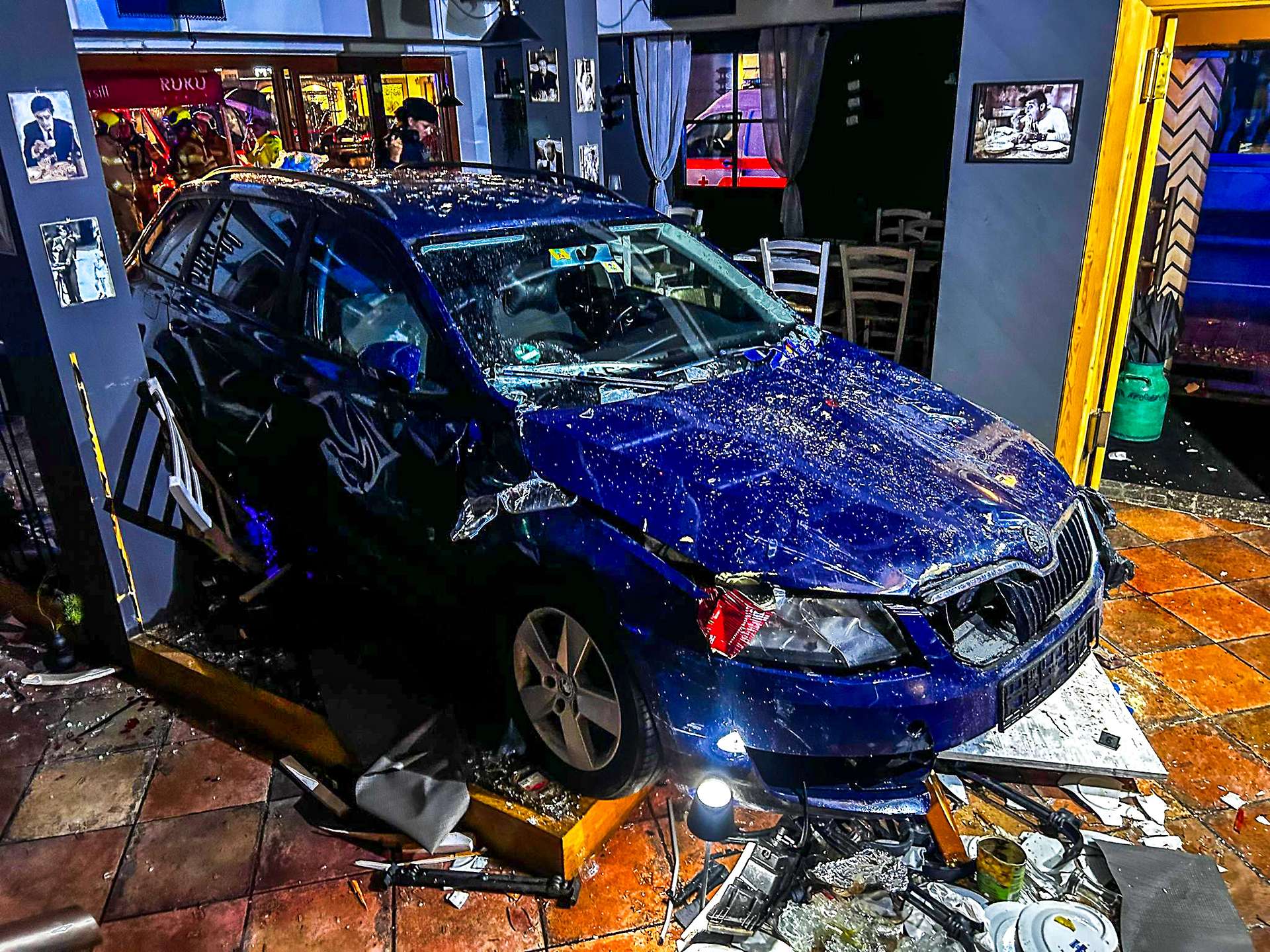 Ein Autofahrer donnerte am späten Sonntagabend am Stadtplatz von Mittersill im Pinzgau in eine gut besuchte Pizzeria und verletzte dabei mehrere Lokalgäste schwer.