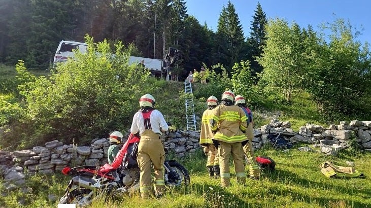 Das Zweirad wurde mit einem Kran von der Feuerwehr geborgen.