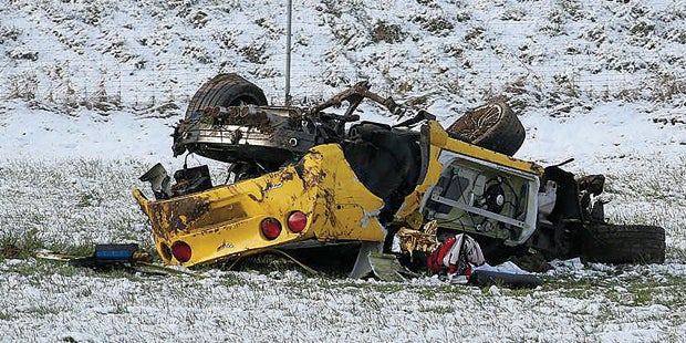 Von einem Lastwagen hatte sich eine Eisplatte gelöst und war auf die Corvette gestürzt.