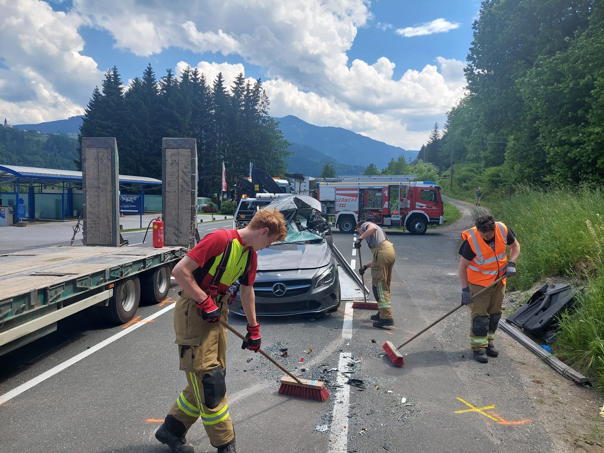 Sbg. Zur Tragödie kam es Samstag kurz nach Mittag auf die Salzachtal-Bundesstraße in Bischofshofen auf Höhe einer Waschanlage: Ein Mercedes-Fahrer übersah beim Abbiegen von der Selbstbedienungs-Anlage zurück auf die Straße einen Lkw mit angehängtem Tieflader. Zu dem verheerenden Crash kam es an einer Stelle, die von den Einheimischen als sehr gefährlich eingestuft wird, da es hier immer wieder zu schweren Unfällen kommt.
