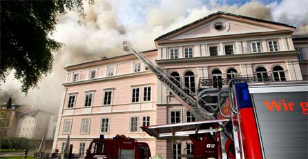 Der Dachstuhl von Schloss Arenberg in der Arenbergstraße in der Stadt Salzburg ist am Montag gegen 15.30 Uhr vermutlich bei Schweißarbeiten in Brand geraten. Es wurde Großalarm für die Feuerwehr gegeben, mehr als 100 Florianijünger der Berufs-und Freiwilligen Feuerwehr der Stadt sowie aus Wals versuchten die Flammen unter schwierigen Bedingungen zu bekämpfen.