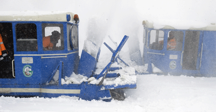 Zum Einsatz kamen fünf 15 Tonnen schwere Rotations-Schneepflüge "System Wallack", die 1955 vom Straßenerbauer Franz Wallack noch selbst konstruiert worden waren.