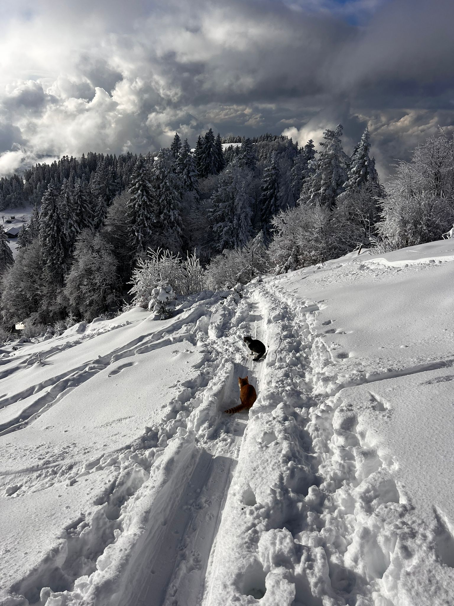 „Weil die Mautstraße derzeit gesperrt ist, entschlossen sich mein Mann und ich am Samstag selbst mit auf Schlitten befestigten Lebendfallen aufzusteigen“, schildert Stadler. Ein langer, kräftezehrender Marsch folgte – unterstützt von Hund Balu, der die Spurensuche begleitete. Schließlich entdeckten sie die Tiere bei der Spielbergalmhütte. Mit etwas Futter ließen sich die hungernden Kater in die Fallen locken.