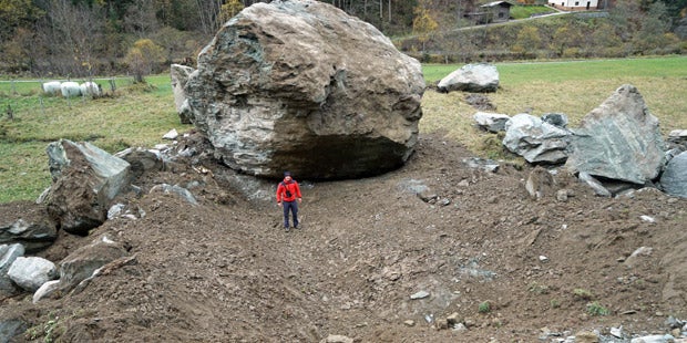 Riesiger Block erreichte Talboden - Keine Personen verletzt oder Häuser beschädigt.