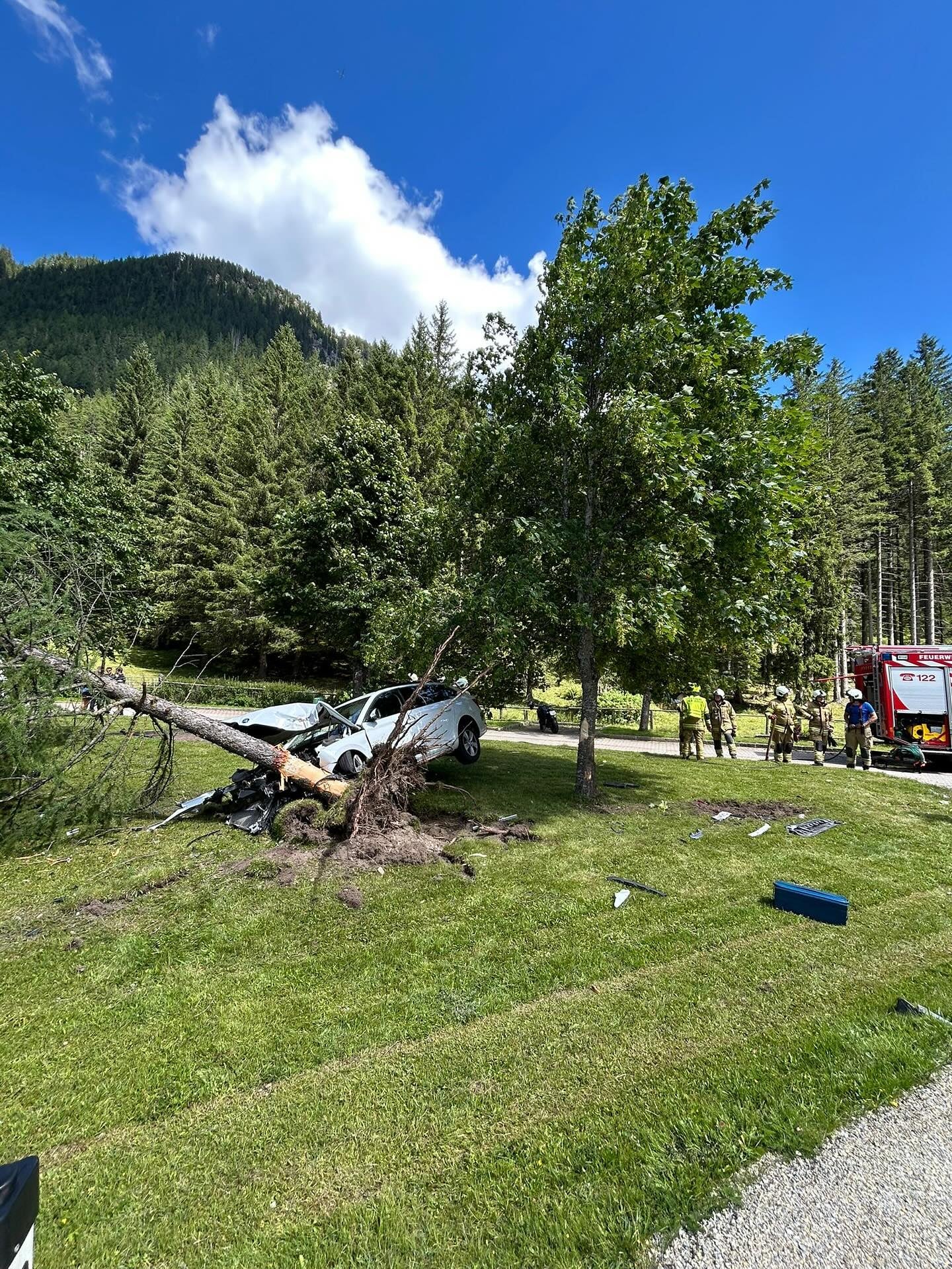 Zu dem Unfall kam es auf der Katschberg-Bundesstraße (B99) in Fahrtrichtung Radstädter Tauern. Der Alkolenker kam in einer leichten Linkskurve von der Straße ab, überflog die Leitschiene, prallte in der Einfahrt zu einem Parkplatz auf und wurde gegen den Baum geschleudert. Vater und Sohn wurden von der Rettung ins Krankenhaus gebracht.