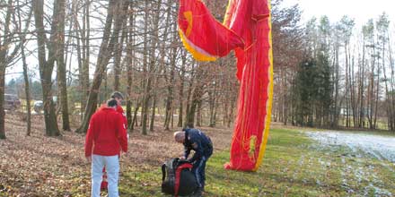 In Baumwipfel gekracht. Wie durch ein Wunder touchierte er im freien Fall eine Baumgruppe und blieb in den Wipfeln hängen. Doch nur kurz – denn durch den wuchtigen Aufprall und den schweren Fallschirm gaben die Äste nach und der Mann stürzte aus einigen Metern Höhe auf die Erde. Mit schweren Verletzungen im Bereich des Brustkorbs blieb er am Boden liegen.