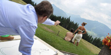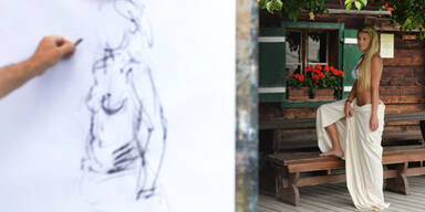 "Irgendwann verliert alles an Reiz. Sogar der Akt bracht frische Luft", sagt Alexander Mitterlechner, der im August einen Akt-Malkurs auf Reitlehenalm auf 1.280 Meter Seehöhe in Altenmarkt-Zauchensee im Pongau leitet. Der Salzburger Maler, Bildhauer und Grafiker bringt für das Pilotprojekt erstmals ein "Model" in die Bergwelt mit. Vor der Naturkulisse des Dachsteins erlernen die Teilnehmer des Workshops das Malen nackter Körper in künstlerischer Freiheit.