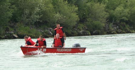 Die Freiwillige Feuerwehr aus Oberndorf war sogar mit einem Jetboot im Einsatz, und fuhr die 15-Kilometer-Strecke bis in die Mozartstadt kreuz und quer ab.