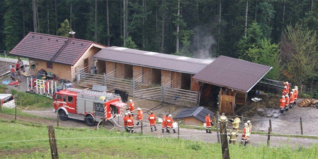 Kurz vor 19.00 Uhr schlug ein Blitz in die Freileitung einer Scheune in St. Koloman (Tennengau) ein. Dadurch wurde eine Stromleitung zerstört, weshalb die Scheune in Brand geriet. Die Pächter brachten mehrere im Gebäude eingestellte Pferde in Sicherheit und versuchten gemeinsam mit Nachbarn, die Flammen zu löschen. Die Feuerwehr löste Alarmstufe 3 aus, weshalb binnen kurzer Zeit knapp 160 Helfer im Einsatz standen und das Geschehen schon nach kurzer Zeit unter Kontrolle hatten. Die Schadenshöhe war vorerst nicht bekannt, informierte die Polizei. Auch in Pfarrwerfen begann ein Dachstuhl nach einem Blitzschlag zu brennen, das Feuer war aber rasch gelöscht.