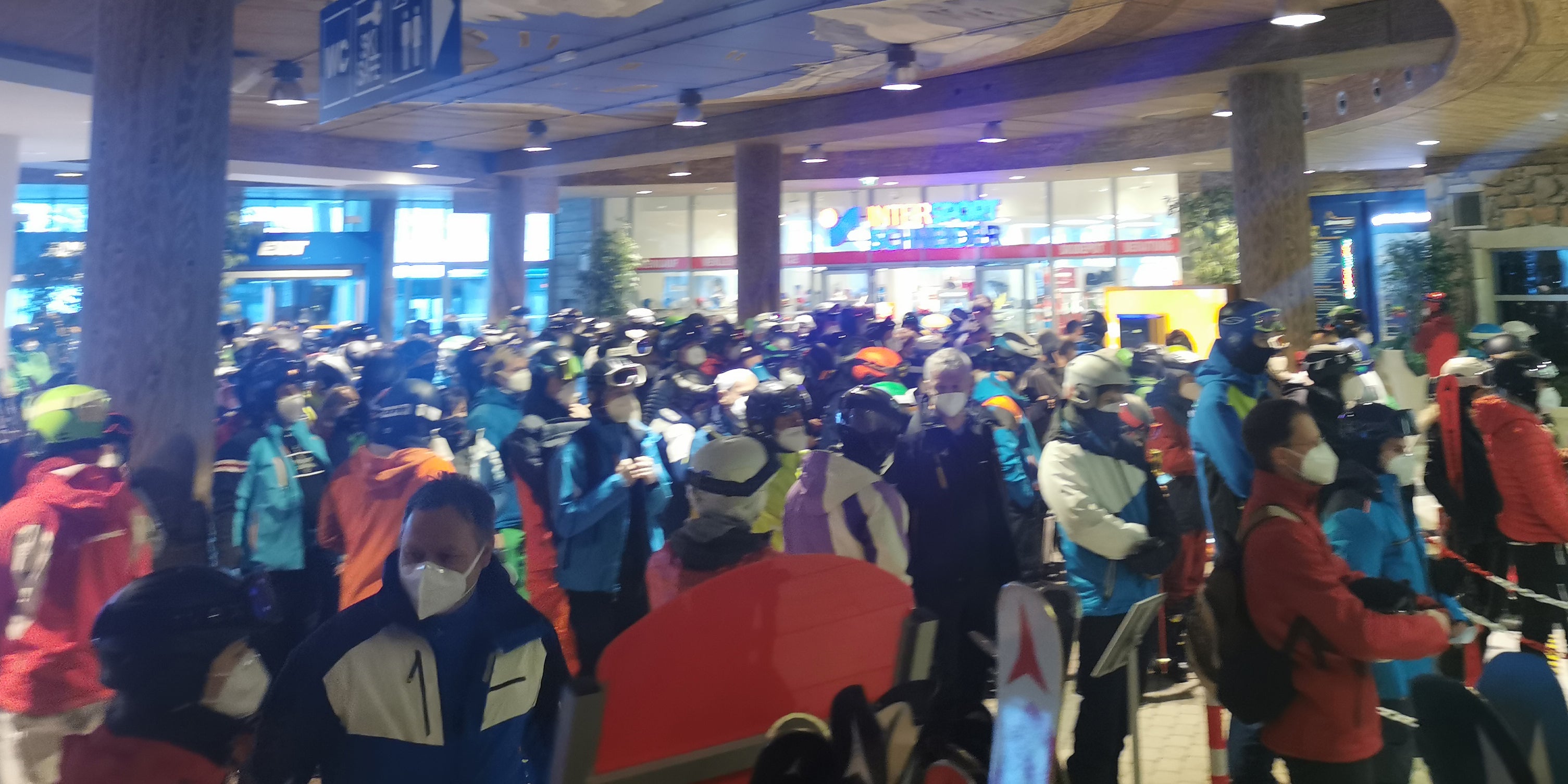 Mega-Ansturm auch in Flachauwinkl. 45 Minuten musste man hier in einer völlig überfüllten Talstation auf eine Skikarte warten.