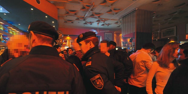 Ein Angreifer biss einem Lokalgast im Streit ein Stück Fleisch aus dem Hals.