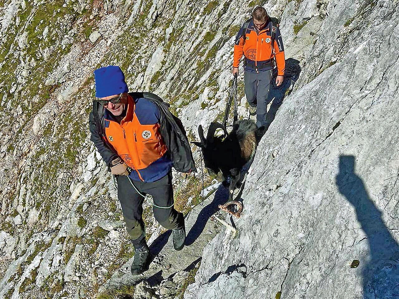 Sbg. In den Leonganger Steinbergen im Pinzgau in Not geraten war „Burli“, der einem Landwirt im Tal gehört, bereits im Sommer. Da war der Ziegenbock einer Herde Gamsgeißen gefolgt und fand sich auf einem schmalen Grasband in der Nordwand des benachbarten Mitterspitzes wieder. Ganz allein und und Chance, den schwierigen allein Abstieg zu meistern. Zwar gab es genug zum abgrasen, um nicht zu verhungern, den kommenden Winter indes hätte „Burli“ da oben mit Sicherheit nicht überlebt. Letztlich rückte die ehrenamtliche Bergrettung Leogang aus, um den im wahrsten Sinne des Wortes allein (im steilen Gelände) stehenden Bock mit vereinten Kräften und geeigneter Ausrüstung herunterzuholen.