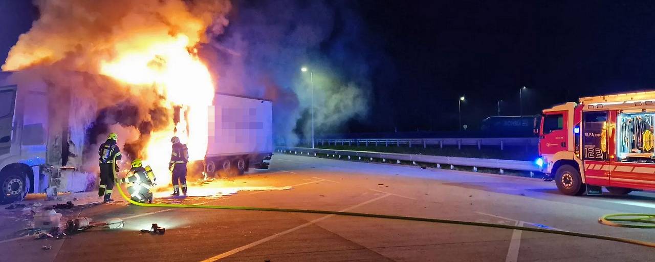 Ein serbischer Lkw-Fahrer ist in den frühen Morgenstunden am Mittwoch fast verbrannt. Er hatte seinen Lkw in Allhaming (Bez. Linz Land) auf der Raststation geparkt und in der Fahrerkabine geschlafen, als plötzlich Feuer ausbrach. Andere Lkw-Fahrer mussten ihn wecken und er konnte gerade noch rechtzeitig aussteigen bevor der Lkw in Vollbrand stand. Es wurde niemand verletzt, drei Feuerwehren löschten den Brand.