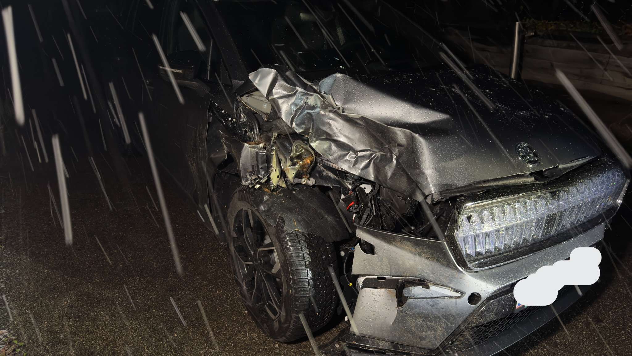 Auf der Landesstrasse 96 krachte dann ein E-Skoda mit einem der beiden Rinder zusammen. Das Tier starb noch an der Unfallstelle. Beim bulligen Enyaq entstand erheblicher Schaden, Lenker und Passagiere blieben aber unverletzt.