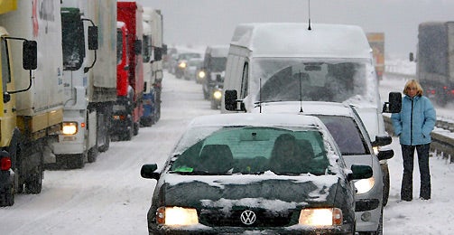Stau feststeckenden Autofahrer mit Decken und Tee zu versorgen. Nach der