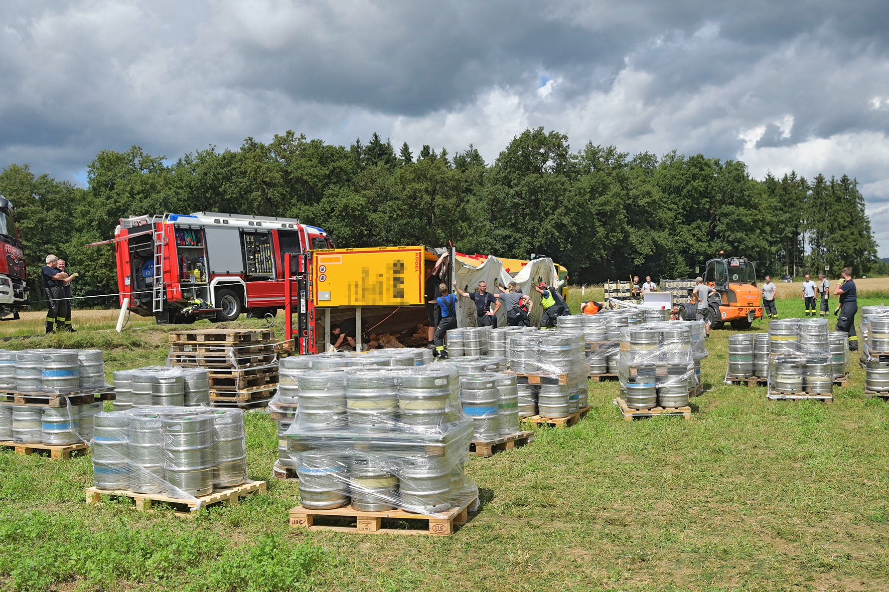 Nur ein paar Stunden später und 20 km weiter kam es am Dienstagvormittag erneut zu einem ganz ähnlichen Vorfall. Auf der Mininger Landesstraße zwischen Weng und Mining kam ein Sattelschlepper rechts von der Straße ab und stürzte um. Dabei wurden Bierfässer und Kisten, vorwiegend Weißbier, in das angrenzende Feld geschleudert.