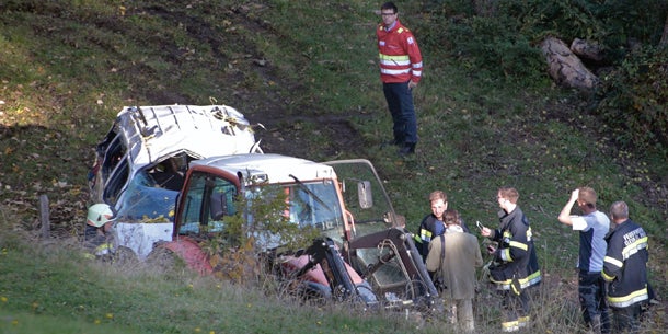 Verzweifelte Kinderschreie erfüllten Dienstagmittag die sonst so idyllische Gemeinde Klein St. Paul am Oberwietingberg: Ein Schulbus mit fünf Kindern war 100 Meter über eine Böschung abgestürzt. Blutüberströmt schleppte Fahrer Cölestin Z. (27) die teils schwer verletzten Schüler über den steilen Hang hinauf. Die Geschwister Sonja (8) und Manuel (7) hatte es schwer erwischt, sie kamen sofort mit dem Heli ins Spital. Ihr Bruder Marco und die Geschwister Heiko und Vanessa, mit denen sie sich jeden Tag den Schulweg teilen, wurden leicht verletzt.