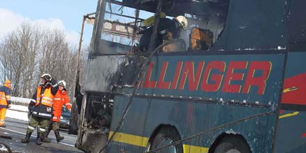 Der Zwischenfall ereignete sich kurz nach 13.00 Uhr zwischen Seewalchen und St. Georgen in Fahrtrichtung Salzburg. Der Lenker des mit Schülern und Lehrern vollbesetzten Busses bemerkte plötzlich eine starke Rauchentwicklung aus dem Motorraum und stoppte das Fahrzeug am Pannenstreifen. Wenig später stand der hintere Bereich des Busses in Vollbrand. Alle Insassen konnten das Fahrzeug jedoch unverletzt verlassen, vier Feuerwehren konnten den Brand schließlich löschen.