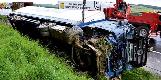 Sattelzug landete im Straßengraben.