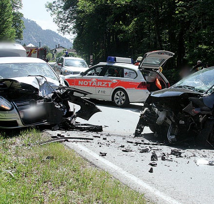 Berchtesgaden, Salzburg. Bei dem schrecklichen Frontalzusammenstoß zwischen zwei Autos sind am frühen Sonntagnachmittag auf der B 20 am Hallthurmer Berg im Salzburger Grenzgebiet insgesamt sieben Menschen und ein Hund zum Teil schwer verletzt worden. Unter den Verletzten befindet sich auch ein 9-jähriges Kind. Ein Großaufgebot des Roten Kreuzes versorgte die Patienten und brachte sie zum größten Teil in das LKH und UKH nach Salzburg. Feuerwehr, Rettungsdienst und Polizei waren im Großeinsatz.