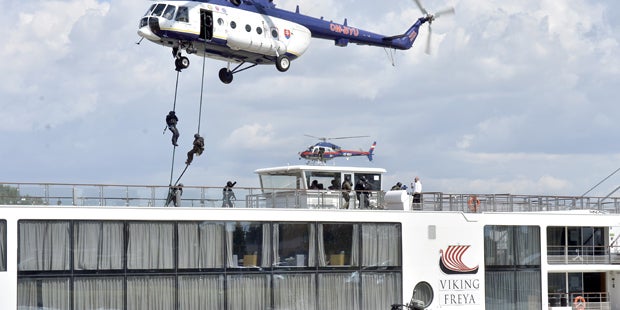 Fünf Terroristen kapern in den frühen Morgenstunden ein Passagierschiff an der ungarisch-slowakischen Grenze auf der Donau. Bei der Donau-Marina in Wien wurde die Geiselnahme auf dem Donaukreuzfahrtschiff von der Cobra und sechs Polizei-Spezialeinheiten aus Deutschland, der Slowakei, Slowenien und Ungarn beendet. Das war heute, Montag, die Übungsannahme einer internationalen Anti-Terror-Übung.