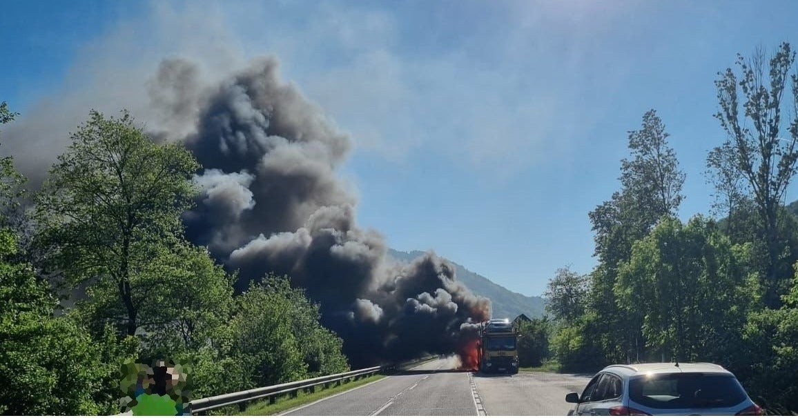 Spektakulärer Brand auf Bundesstraße direkt neben der Donau.