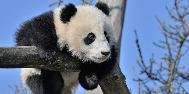 Der sieben Monate junge Panda-Bub erklimmt wagemutig die Bäume: Alle Bilder.