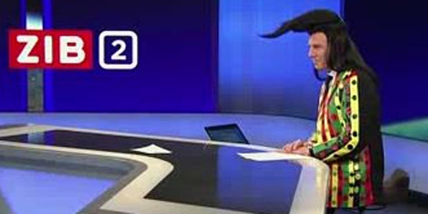 Wien. Fast schon Tradition hat die Verkleidung von ORF-Anchor Armin Wolf zum Fasching. Heuer überraschte er die "ZiB2"-Zuseher mit einem knalligen Kostüm.