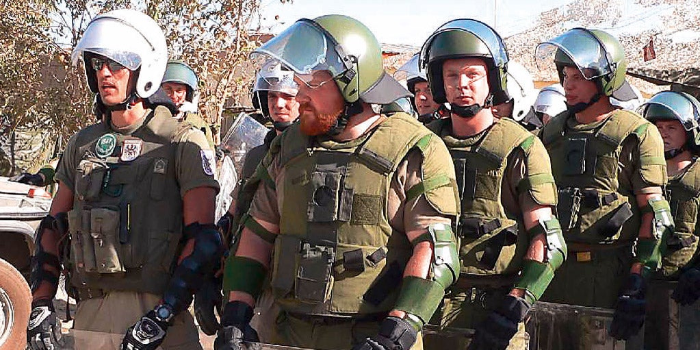 Polizei setzt Schilde und Helme ein, das Heer nicht