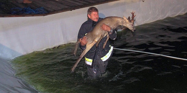 Die steirische Feuerwehr Eibiswald musste am Donnerstag Abend zu einem ungewöhnlichen Rettungs-Einsatz ausrücken: Ein Rehbock war in Stammeregg (Bezirk Deutschlandsberg) in einen Pool gefallen. Die Feuerwehr rückte daraufhin aus und befreite das Reh aus seiner misslichen Lage. Das Tier suchte jedoch nur Sekunden nach seiner Rettung das Weite. Glücklicherweise blieb es unverletzt.