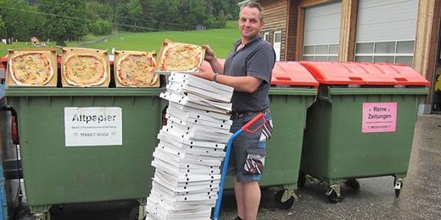 "Der Duft von frischer Pizza hat mich am Morgen zum Papierbehälter geführt", berichtet Peter Almer von der Gemeinde Pöllau der "Kleinen Zeitung". Beim ersten Mal fand man 60 Pizzen, dann 30 und diesmal 52 - in Summe also 152 Pizzen.