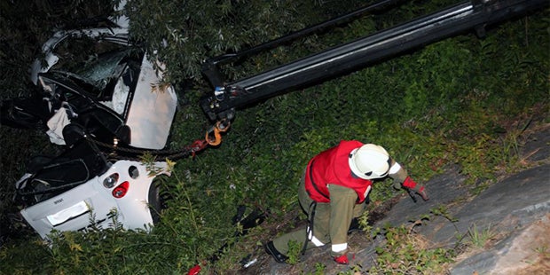 Feuerwehrleute bargen den Mann mit einem Rettungskorb. Trotz Erstversorgung durch Notfallsanitäter und einen Arzt kam für den 24-Jährigen jede Hilfe zu spät. Er erlag noch am Unfallort seinen Verletzungen. Der Pkw, der auf der Uferböschung zu liegen gekommen war, wurde mit einem Kranfahrzeug geborgen.