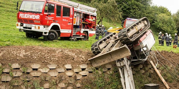 Der laut Feuerwehr erfahrene Baggerfahrer wollte gegen 14.00 Uhr in Fladenbach in der Gemeinde Stanz im Mürztal (Bezirk Bruck-Mürzzuschlag) mit seinem Arbeitsgerät einen Wassertank in ein Bassin heben. Dabei kippte der Bagger und stürzte über eine Geländekante.