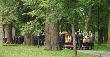 beiden Verstorbenen in Richtung Stiftskirche in Bewegung. Die Särge waren