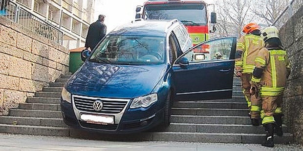 Nach einem Besuch der Technischen Universität Graz nahm der einheimische Lenker den falschen Weg und landete auf einer Stiege an der Stremayrgasse. Die Berufsfeuerwehr musste ausrücken, um den kurios „geparkten“ VW Passat zu bergen. Ein „technischer Hilfseinsatz“, für den der Autolenker aber die Geldbörse zücken muss.