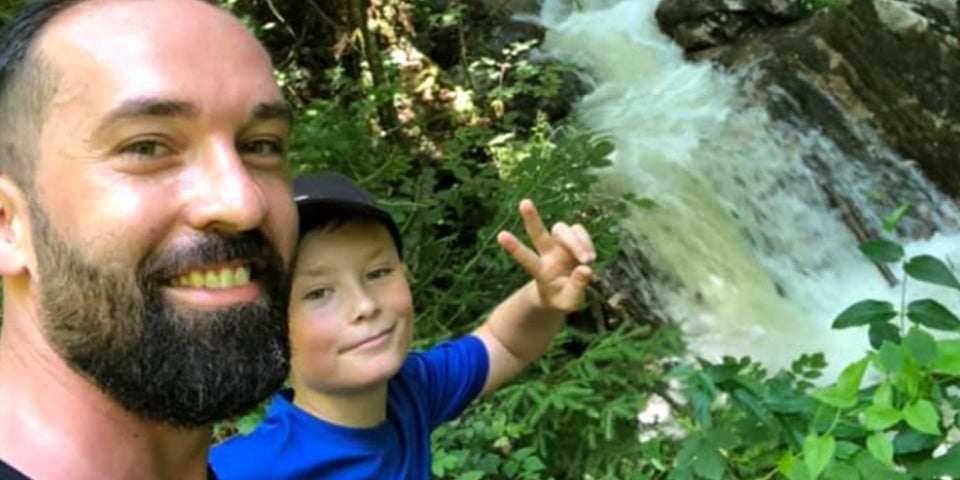 Kurz nach diesem Selfie lösten sich die gefährlichen Felsbrocken aus der Steilwand und stürzten auf die Wanderer - Andreas Pichler konnte sich und seinen Sohn gerade noch retten.