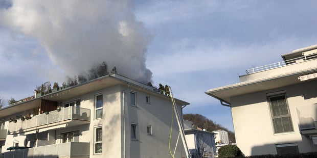 Das Feuer im Außenbereich der Dachterrasse sowie auf der Fassade und in Teilen der Dachkonstruktion war schnell unter Kontrolle, die Bewohner hatten sich selbst in Sicherheit gebracht. Für die umfangreichen Nachlösch- und Sicherungsarbeiten wurde noch eine Drehleiter zum Dach eingesetzt.