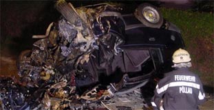 Drei Todesopfer forderte Samstagfrüh ein Frontalzusammenstoß zweier Pkw in Pöllau (Bezirk Hartberg) in der Oststeiermark.